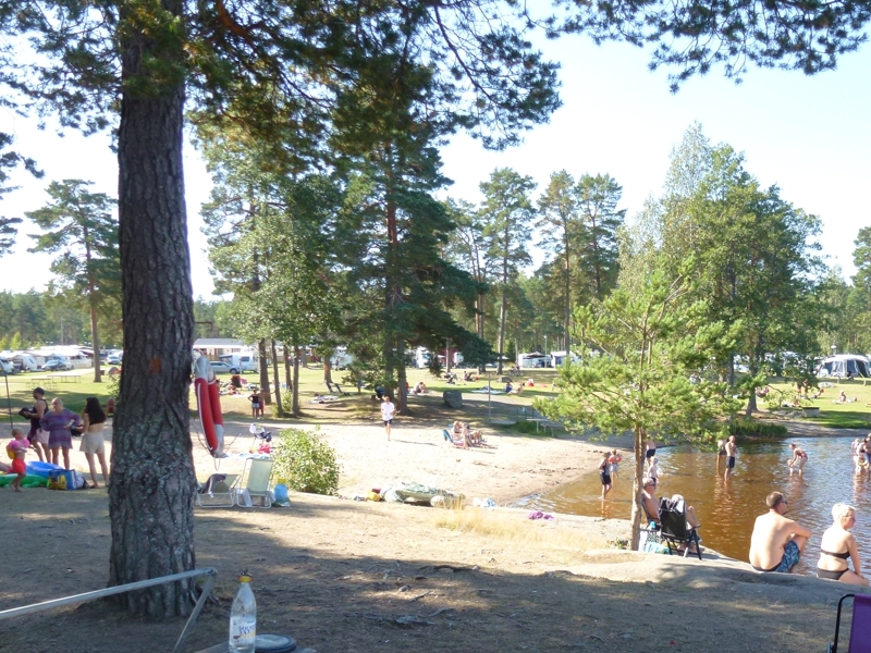 I direkt anslutning till campingen finns också ett friluftsbad med duschar, volleynät och stora lekytor.