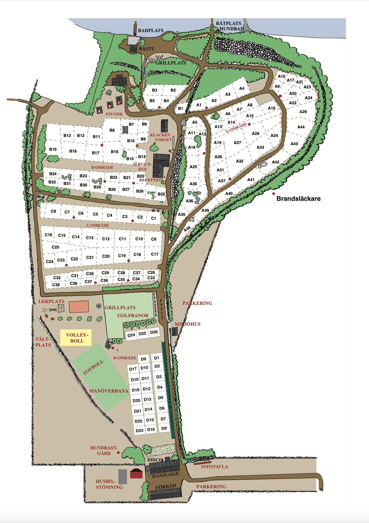 - Aktiviteter: Bollplan, boule, basket, volleyball, pingisbord och darttavla