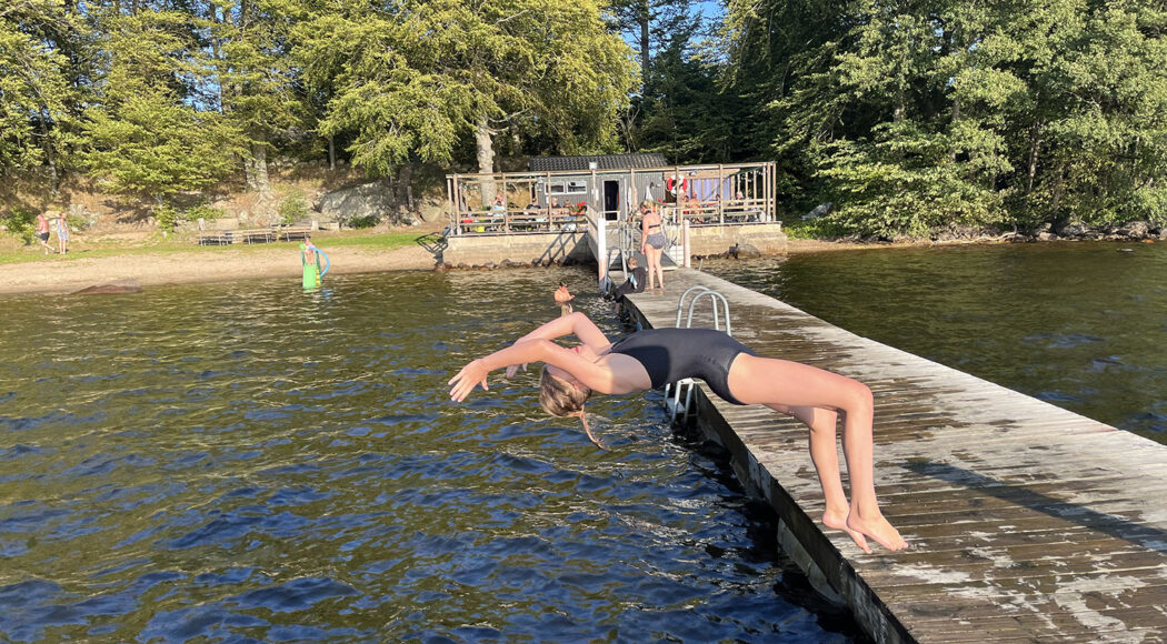 - Bastun nere vid sjön lockar till bad både morgnar och kvällar, annars badar man direkt från bryggorna eller från den lilla sandstranden.