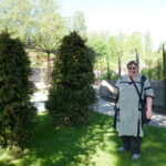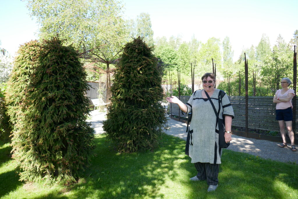 Guiden Eva Falk-Zackrisson förevisar Smultrongranar på Wij trädgårdar. Foto: Caj Abrahamsson