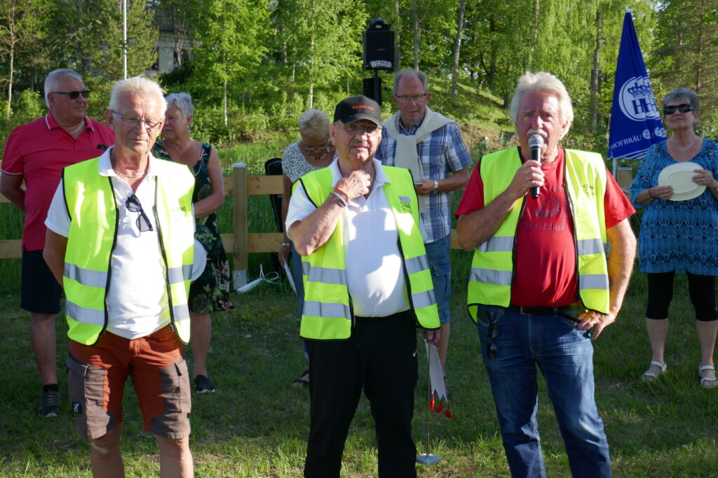 Lite info innan grillmaten. Fr.v. Ordförande för X-sektionen Jan Hörnfeldt. Vice Riksordförande Lasse Lindström och nyligen avgående Riksordförande Börje Svärdström. Foto: Caj Abrahamsson