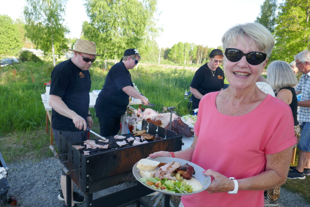 ”Det här blir gott” tycker Margareta Larsson och visar upp sin tallrik. Foto: Caj Abrahamsson