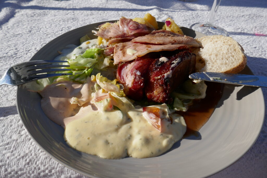 Undertecknads tallrik. Här var det mycket god mat med fyra goda såser. Foto: Caj Abrahamsson