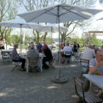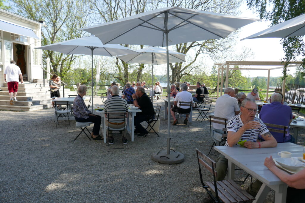 Frukost vid Wij trädgårdars restaurang. Max fyra vid varje bord. Foto: Caj Abrahamsson