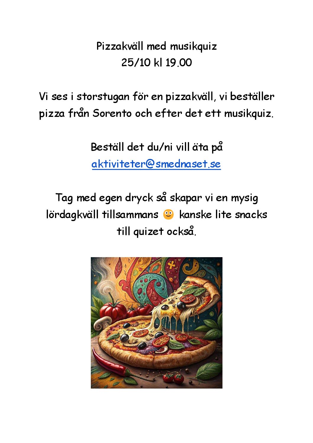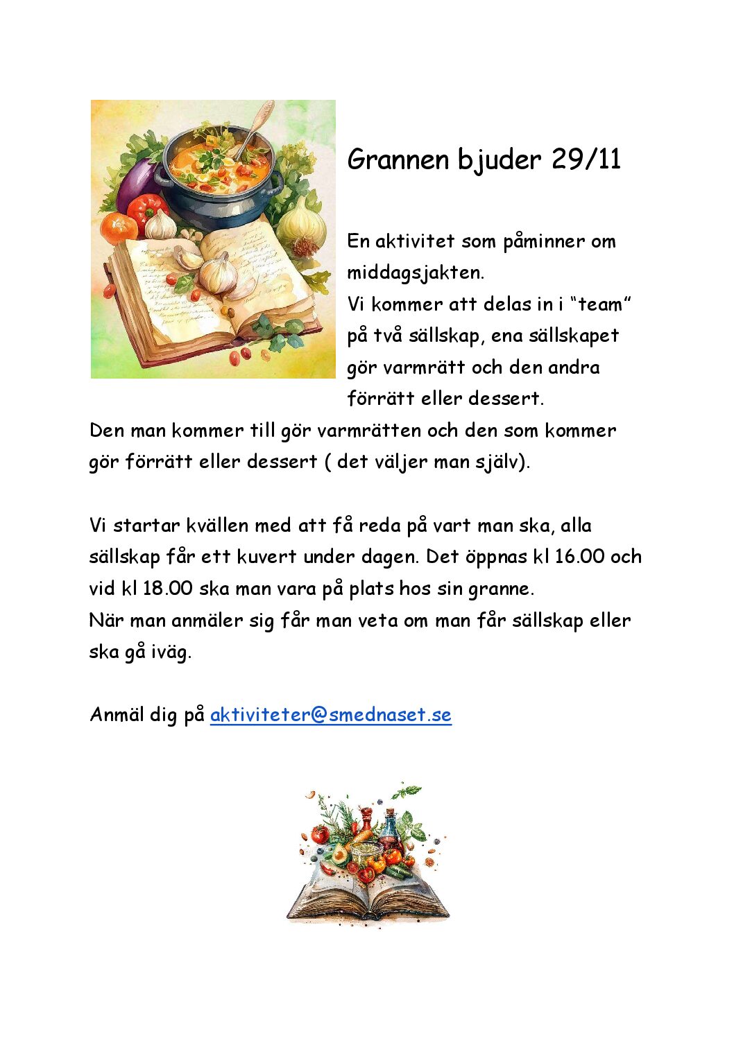 Lördagen den 25 oktober är ni hjärtligt välkomna till Ladan klockan 18.30. I högtalarna spelas det Umpabumpa musik och utanför står grillarna tända. För 50 kronor får ni följande: ½ korv av varje sort: Nurnberger, Bratwurst, Currywurst. Korvbröd, Sauerkraut, Senap. Kaffe efter maten. Medtag egen dryck. Tyvärr kan vi inte tillgodose allergier. Anmälan skickas till:...