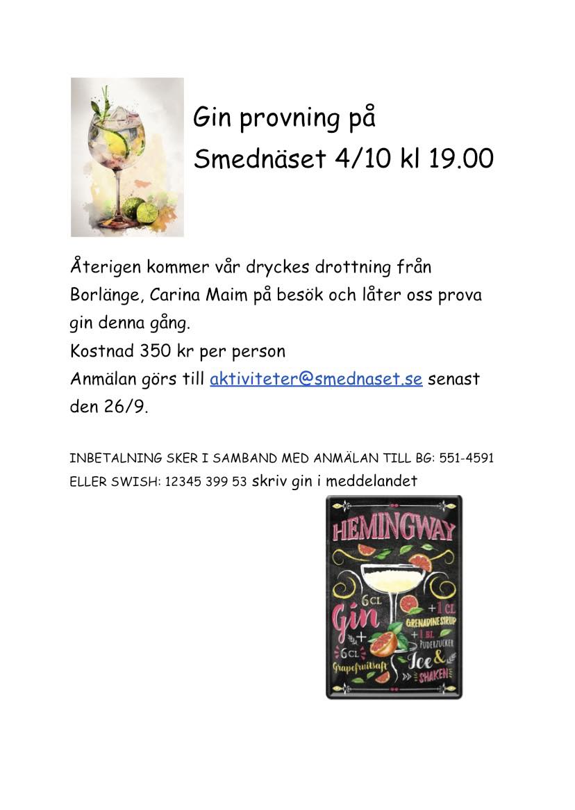 Anmälan görs till [email protected] senast 26/9 Inbetalning sker i samband med anmälan till Bg: 551-4591 eller Swish: 12345 399 53