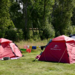 Tältplatser ca 20. Vandrarhem 10 rum/30 bäddar.