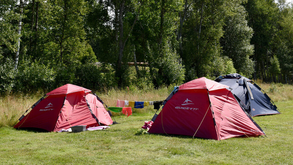 Tältplatser ca 20. Vandrarhem 10 rum/30 bäddar.