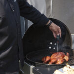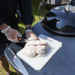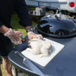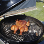 - Kycklingen ska tillagas indirekt i klotgrill med glöden på sidorna av grillen och kycklingen i mitten.