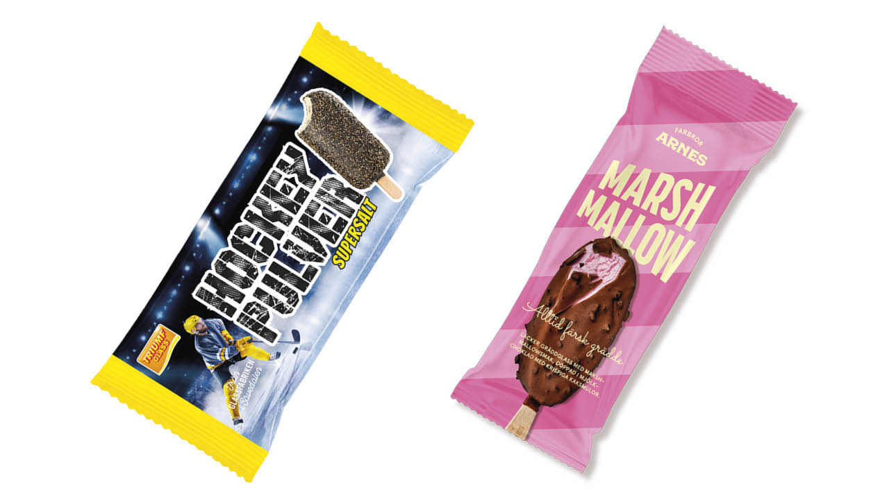 Triumfglass premiumvarumärke Farbror Arnes levererar två nyheter. Marshmallow är en gräddglass med marshmallowsmak, doppad i mjölkchoklad med krispiga kaksmulor. Lemoncurd (limited edition) består av gräddglass med citronsmak av frisk citronsås doppad i vit choklad.