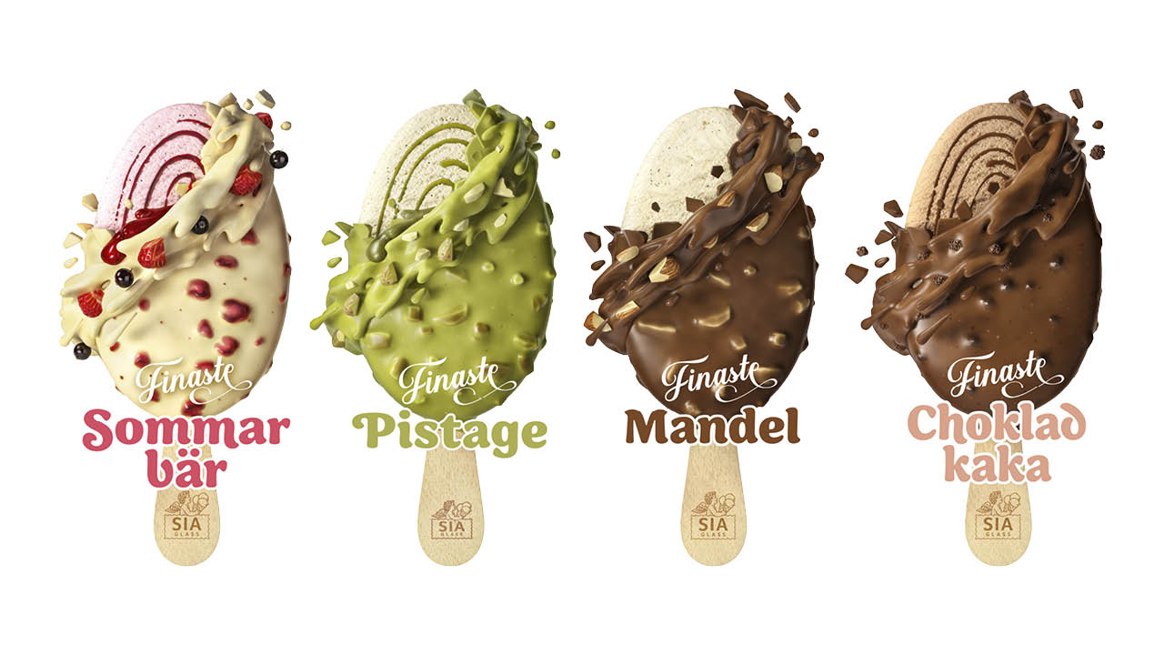 Sia glass storsatsning 2024 är den nya serien Finaste som släpps i fyra olika smaker: Sommarbär, Pistage, Mandel och Chokladkaka.