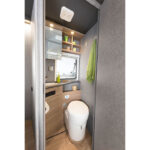 De kortare planlösningarna T/I 6817 EB och T/I 6877 har i stället ett kompakt tvättrum och integrerad dusch. Helt nytt för alla Trend-modeller är det plana golvet utan nivåskillnader, så det finns ingen risk att snubbla.