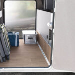 Garaget längst bak har dörrar som enkelt kan öppnas med en hand. Ramen är nedsänkt bakom bakaxeln vilket gör det enklare att lasta. Här finns fri höjd på upp till 110 centimeter. Nya Dethleffs Trend byggs på Fiat Ducato med 140 hästar stark dieselmotor med avgasklass Euro 6d Final. Som tillval finns en version med 180 hästkrafter. Nya Dethleffs Trend hade premiär på CMT-mässan i Stuttgart 13–21 januari.