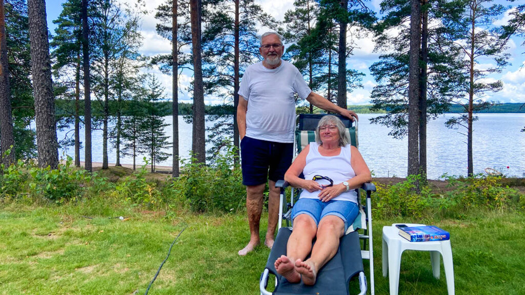 – Vi har badat varje morgon – det måste man när man ligger så här nära vattnet. Det är ett kanonläge. Kvällarna har varit jättefina med solen som går ner över sjön, säger Ingegjerd.