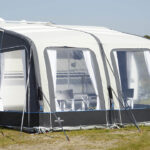 Kallas även lufttält och är den tälttyp som är mest mobil och enklast att montera. Tältet blåses upp på några minuter med en pump som ingår i paketet. Finns med A-mått och olika dimensioner som passar de flesta husvagnar.