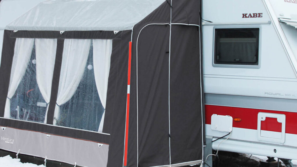 Vintertält har en kraftigare ram och PVC-tak som sluttar brantare för att bättre klara snö. Finns också vintersäkringar och stormsäkringar för att de ska klara hårdare väder. Precis som universaltälten passar vintertältet alla husvagnar. Notera att vissa campingplatser kan ställa krav på tältets djup för att underlätta snöröjningen.