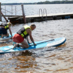 – Det är kul – speciellt i en insjö när det inte är så mycket vågor. Det är en perfekt sport att utöva som inte kräver så mycket: en flytväst bräda och paddel. Vi lånade våra brädor här och höll oss mest runt bryggan. Det är lite svårt att stå upp så vi körde lite på knä också, säger han.