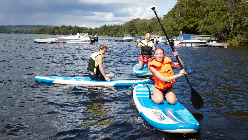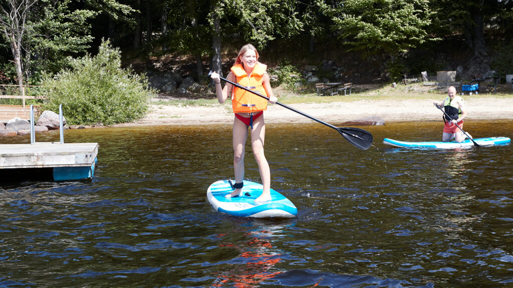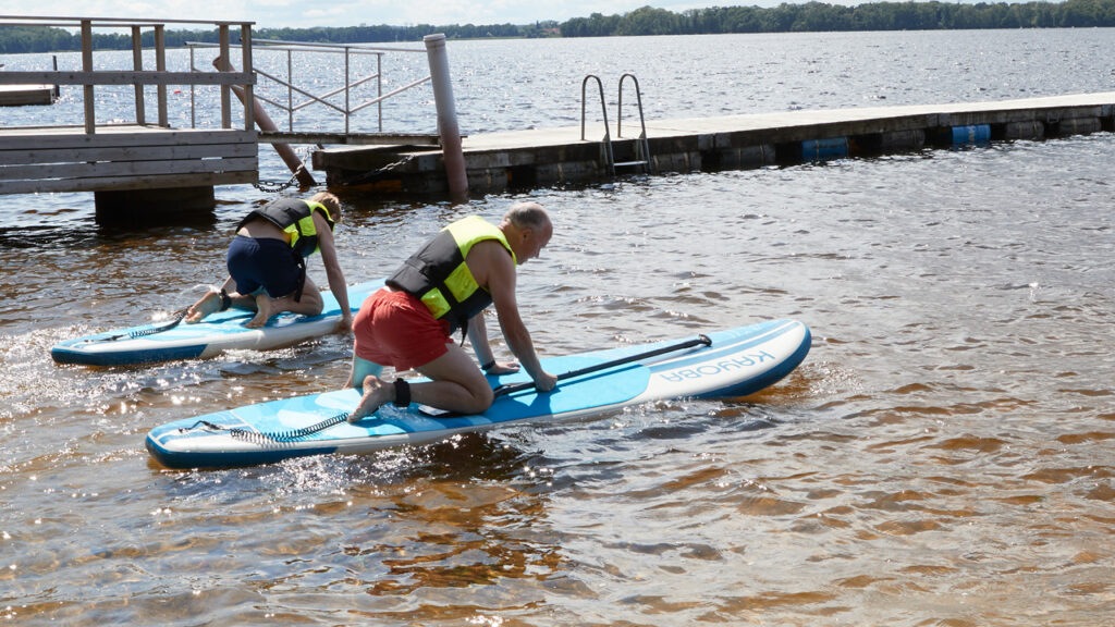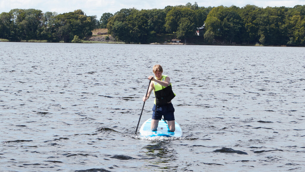 – Det är kul – speciellt i en insjö när det inte är så mycket vågor. Det är en perfekt sport att utöva som inte kräver så mycket: en flytväst bräda och paddel. Vi lånade våra brädor här och höll oss mest runt bryggan. Det är lite svårt att stå upp så vi körde lite på knä också, säger han.