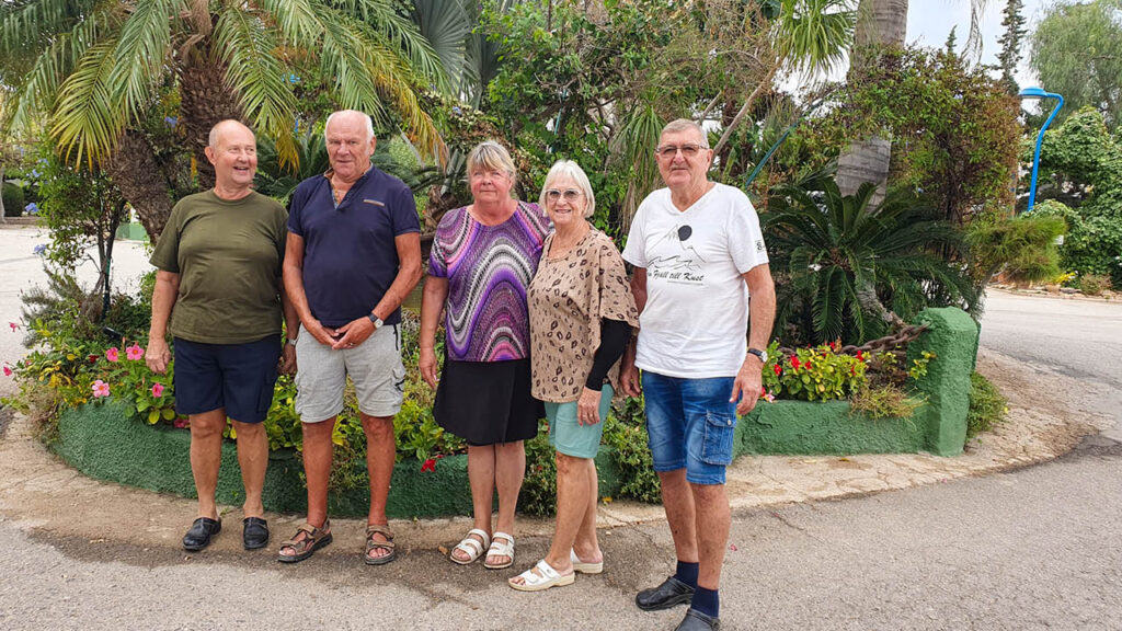 Det är mulet och ”bara” 25–26 grader på campingen i Bolnuevo när Fritidsmagasinet träffar gänget från Norrbotten på en online-intervju i mitten av oktober. Åke Pettersson från Boden, Stig Halmedal från Haparanda och Kjell-Åke Wennström och sambon Orvokki Mononen från Luleå sitter i kortärmat i Åkes förtält.