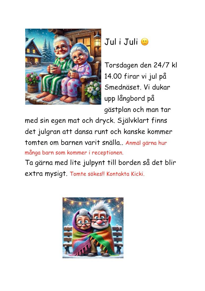 Caravan Club Smednäset Smednäsvägen 30, Linghed, SwedenTorsdagen den 24/7 kl. 14:00 firar vi Jul på Smednäset