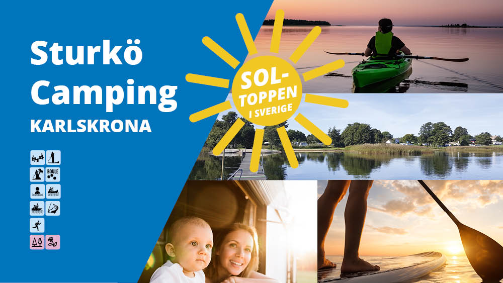 30 km sydost om Karlskrona, på södra delen av Sturkö, vid en vindskyddad havsvik ligger Sturkö Camping – familjecampingen där du kan aktivera dig och hela familjen eller bara njuta av havet och den underbara naturen.